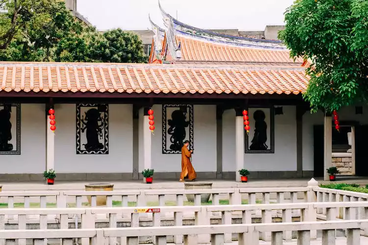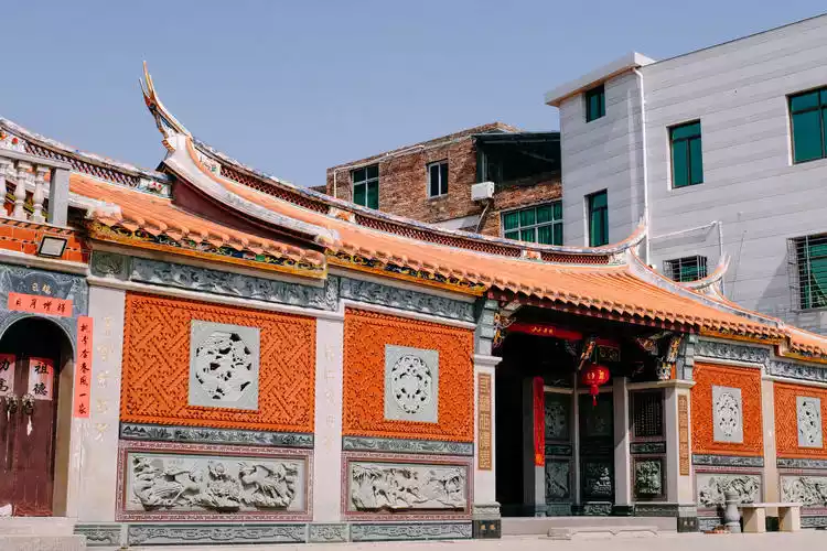 The main hall is in typical southern Fujian style, with red bricks and yellow tiles, intricate carvings, and a double-eaved hip roof, but it is very spacious horizontally, giving people a sense of stability.
