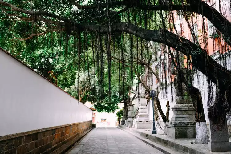 The big banyan trees in the courtyard are 150 years old, with long beards hanging down, which is both fresh and heavy in beauty.
