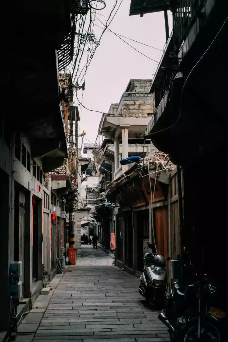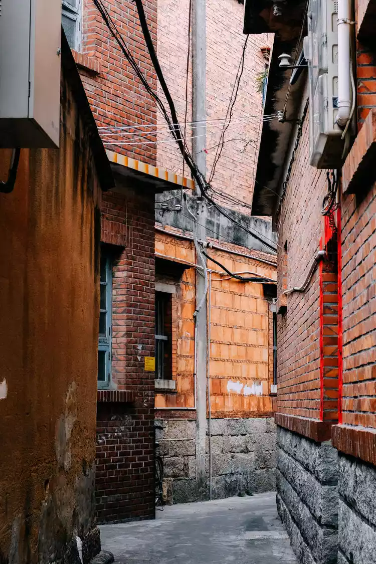 The alleys are wide and narrow. The wide ones can accommodate cars, while the narrow alleys have walls close to each other and only one or two people can walk side by side.