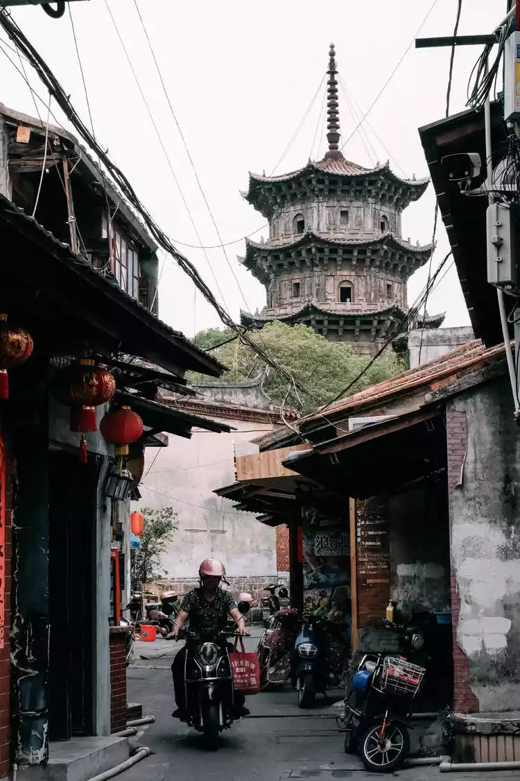 Xiangfeng Lane is also a great spot for taking photos, where you can take pictures of both the East Pagoda and the city streets.