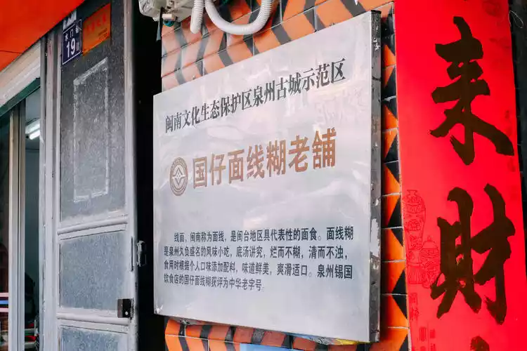 Noodle soup is to Quanzhou what hot pot noodles are to Fuzhou—a must-try. Guozai Noodle Soup is a well-known local specialty, known for its broth that's smooth, yet not mushy, and clear, yet refreshingly delicious. It's made with handmade noodles, cooked in a broth, and then thickened with starch to create a paste. While it may appear to be filled with thin noodles, the experience is completely devoid of noodles; they melt seamlessly into the broth.