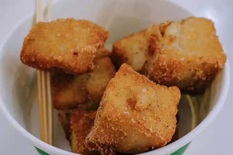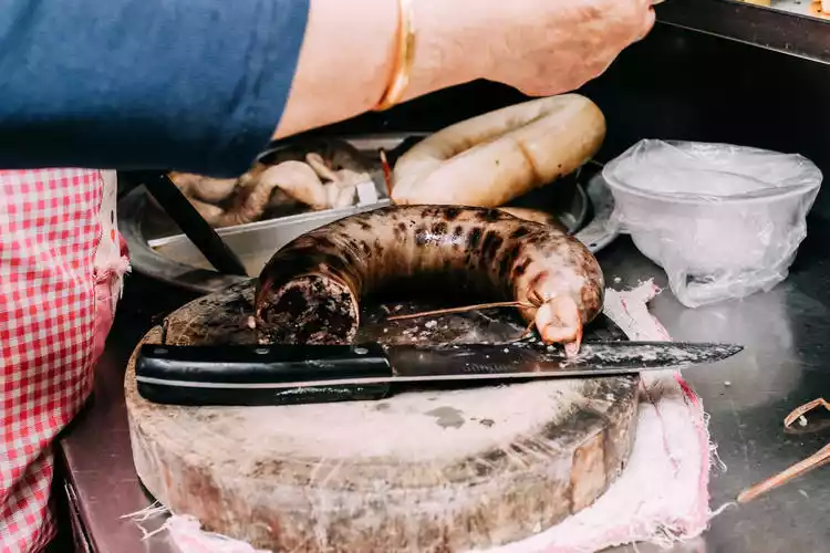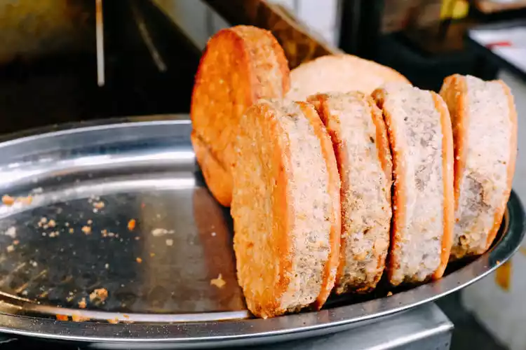 The owner of this shop is quite capricious. She only sells it at noon, so go around 11 PM to get it. Sometimes she's closed. It's located in an alley, so it's a little hard to find. You can smell the aroma from far away! This is pig blood sausage, a local favorite, but we're not quite used to it because the pig blood is quite fishy.