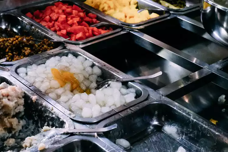 You can add various ingredients into it, such as taro, red beans, watermelon, etc.