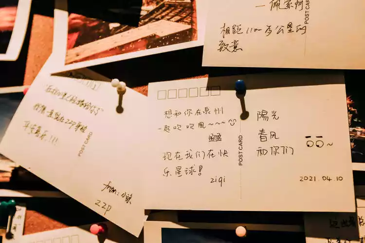 The postcards in the cafe are so cute. Every customer can ask the store for a free postcard. You can write on it and leave it in the store, or take it home.