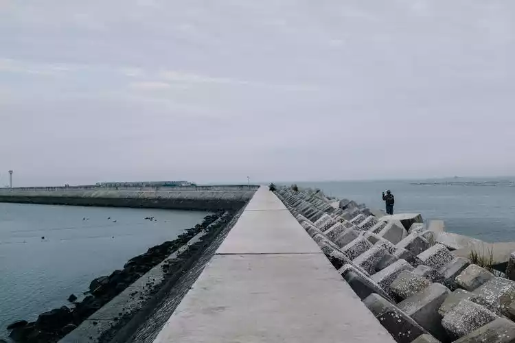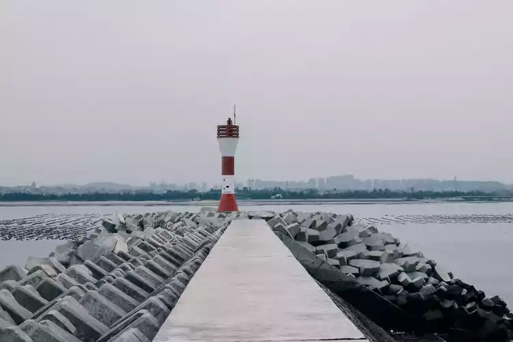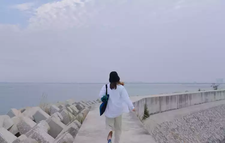 Although the embankment doesn't look long, it's quite tiring to walk along. We finally reached the end, then turned three times before reaching the lighthouse. And the wind was so strong the whole way! In the evening, local elderly men were strolling along the embankment. They walked so fast, and when they reached the lighthouse, they stretched and clapped their hands before turning back. The elderly man even said, "I just saw you on the road, how did you get here so soon?" My friend and I couldn't help but sigh, "We are such good tourists!"