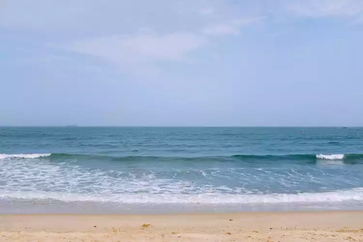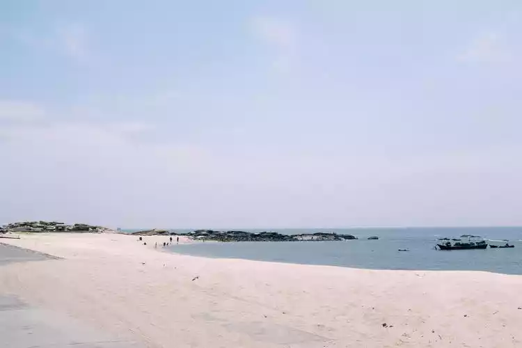 We walked along the beach. There were almost no pedestrians on the street in the afternoon. Occasionally, a fisherman would ride a motorcycle past us...