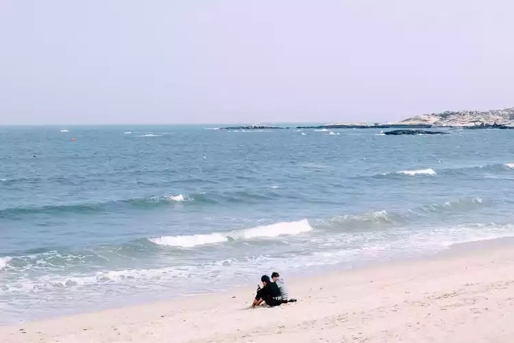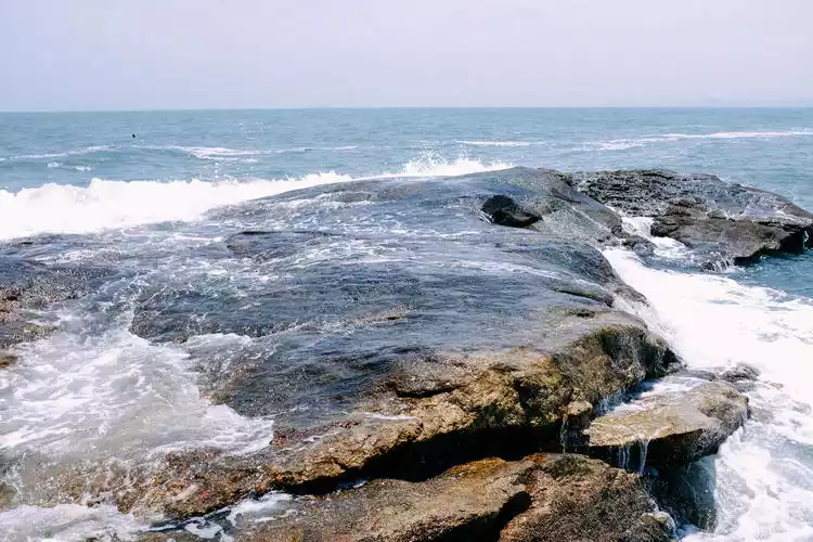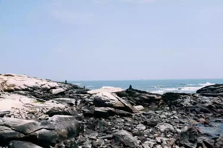 The seemingly calm sea was actually turbulent. We climbed up these jagged rocks and headed towards the waves. Be sure not to step on the wet rocks; they're super slippery! By the time we'd taken some photos in the middle of the day, the tide had already risen the way we came. We were stuck in the middle of the sea, unable to get back. The wet rocks were incredibly slippery, so we had no choice but to take off our shoes and stumble barefoot, slipping with every step as we made our way back. But the water was so cool, it was super comfortable!