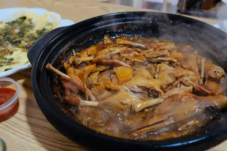 Ginger duck, 65 yuan per portion. It's a truly massive portion! The two of us girls couldn't finish it! As Nanjing natives, we're quite picky about duck. As the saying goes, "No duck leaves Nanjing alive." If the duck isn't properly prepared, it'll have a strong smell, and even the slightest hint of it is enough to make me lose it. But this ginger duck is incredibly delicious, perfectly stewed to perfection, with just the right amount of ginger flavor—not too strong, not too weak. Who could resist this piping hot pot of ginger duck? I washed it down with two bowls of white rice!