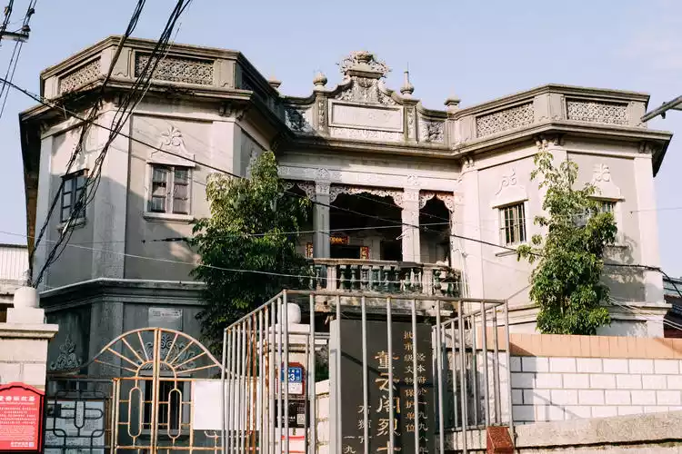 Not far from Jiyang Tower is the former residence of martyr Dong Yunge, also a reinforced concrete, Western-style building. Its exterior walls are exquisitely decorated and well-preserved, with patterns of phoenixes, unicorns, longevity patterns, ancient coin patterns, and auspicious clouds clearly visible. It's probably a protected building now, and the gates are locked, preventing entry.