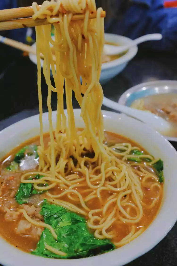 The beef noodles are really fragrant, as if they were made with sesame paste or peanut butter, but they also become drier the more you eat them.