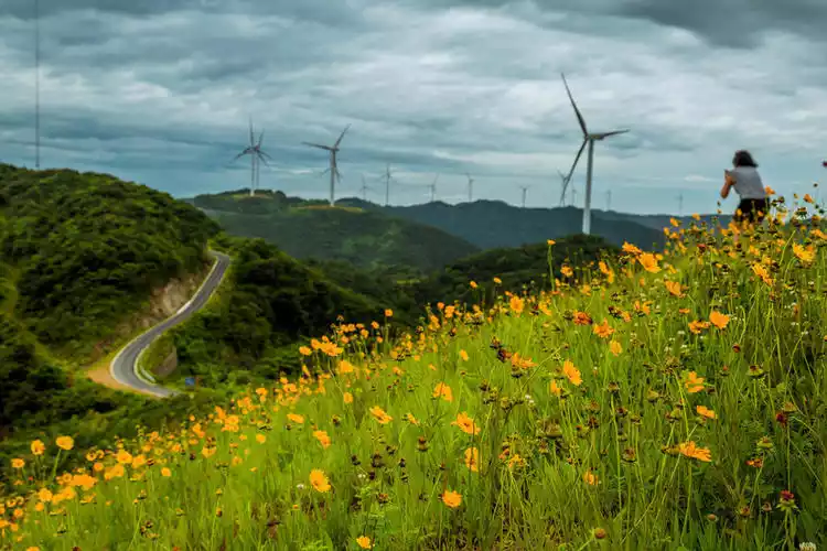 Warm reminder: Every year from April to May, flowers bloom on both sides of the road, and the windmills in the distance turn slowly. This is the most beautiful windmill road.