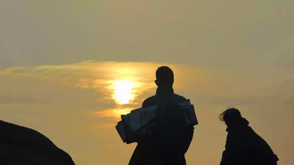 Legend has it that from its summit, one can see Qin to the west and Yue to the south, hence its nicknames: Qinguan Peak and Yueguan Peak. The 30-meter-long Sun-Viewing Corridor, with its interconnected pavilions and corridors, resembles a towering fairy pavilion, dazzlingly colorful. Gongbei Stone, also known as the Sea-Viewing Stone, is 6.5 meters long, angled 8 degrees northwest and 30 degrees from the ground. Climbing it offers a panoramic view of the rising sun. A poem by Li Xingzu reads: "Just hearing the cockerel crow, the rising sun begins to brighten. The vast sea air stirs with the clouds, and the tourists perched on the stone feel a special emotion."