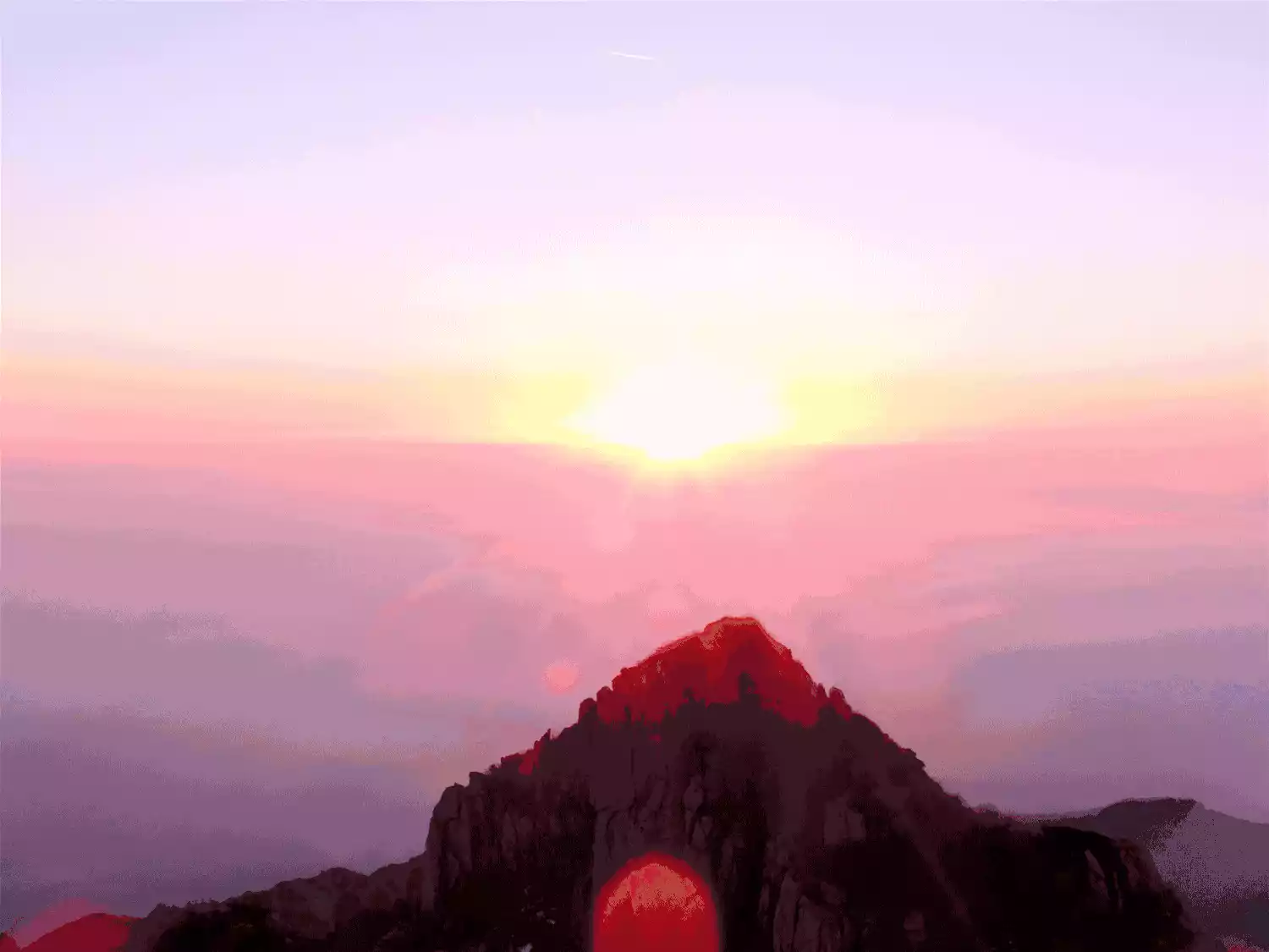 Many people wish to watch the sunrise when visiting Mount Tai. At dawn, the clouds and mist merge into one, as if two suns are jumping out of the sea at the same time.