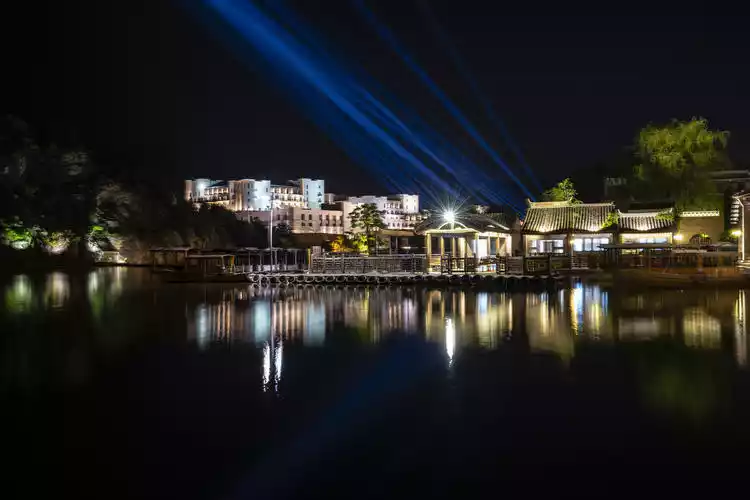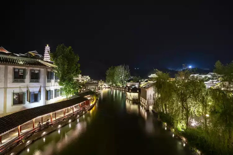 The Tanghe River in the town is dotted with bridges, and the lights sparkle at night, making Gubei Water Town even more colorful at night. Although Gubei Water Town is a newly built town, the architecture is completely in traditional Chinese style, giving the town an antique feel.