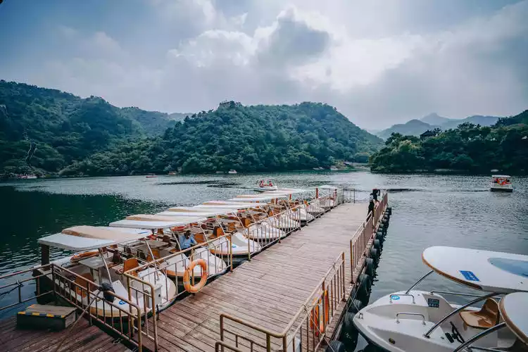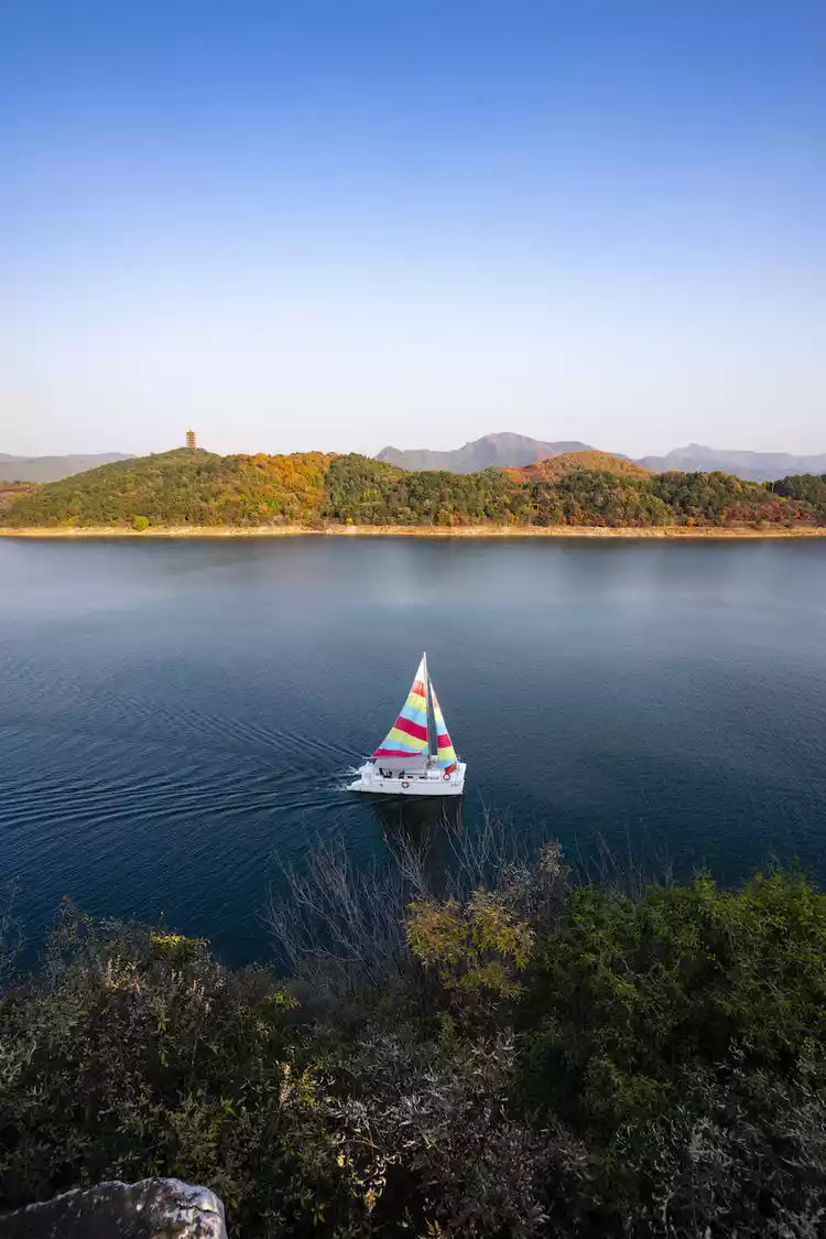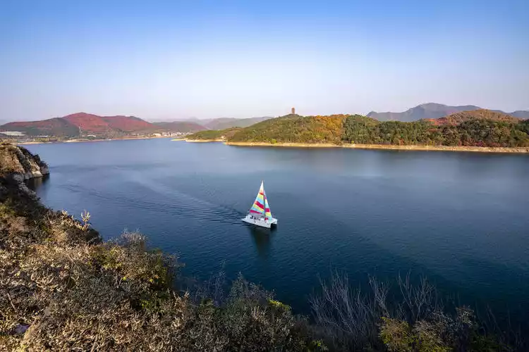 The mountains around Jinhai Lake are now a perfect time to see the crimson and golden leaves. After a lake cruise, hiking in the mountains is also a great way to enjoy the autumn scenery! The waters of Jinhai Lake are crystal clear, and you can choose to cruise on the lake by boat, speedboat, or sailboat, and even climb the lakeside peninsula to see the crimson leaves up close. There's also a large lawn below the Jinhai Lake Dam, perfect for camping!