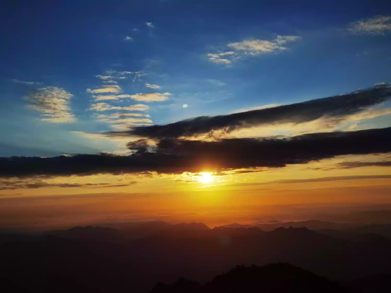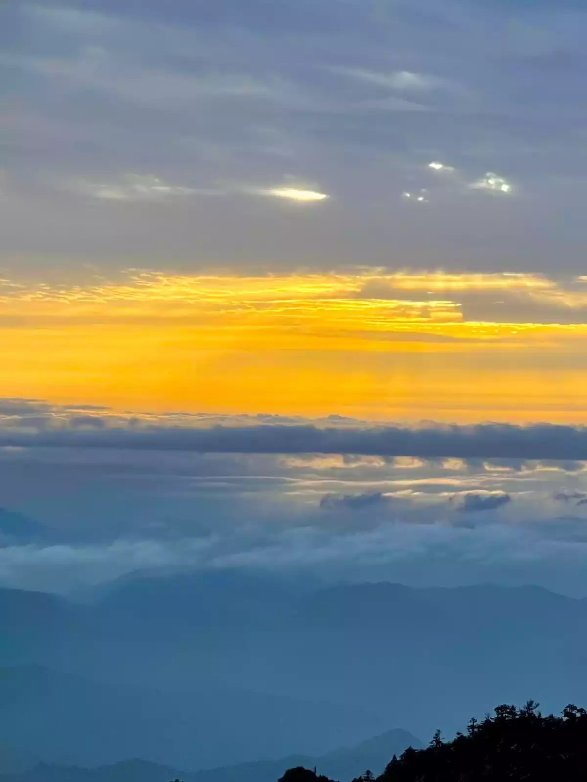 You need to be lucky to see it. There are two common types of Buddha's light: one in the direction of sunrise and the other in the direction of snow-capped mountains. The three-layer Buddha's light is something you can only encounter by chance.