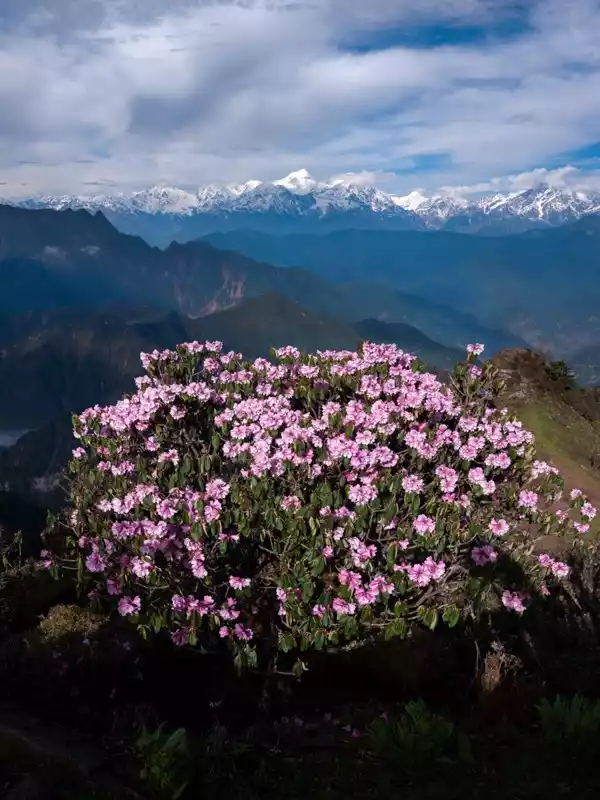 This is a seasonal spectacle. Starting in May and June each year, the mountainside to the summit is blanketed in vast expanses of pink azaleas, complementing the sea of clouds and creating a breathtaking display of beauty atop the high mountains.