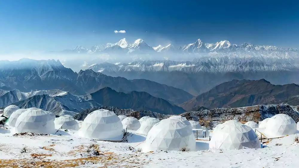 You can take pictures of the sea of clouds during the day, the sunset at 7-8 pm, the starry sky and the Milky Way at night, and the sunrise with the Buddha's light shining on Mount Gongga at 5-6 am.