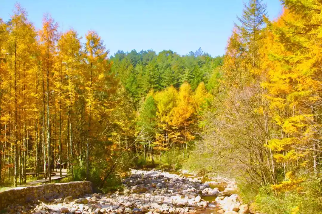There is a very spectacular primeval forest here. In the golden autumn season, red maples, green pines, white birches, yellow maples...the trees in the mountains are blown into colorful mountains by the autumn wind.