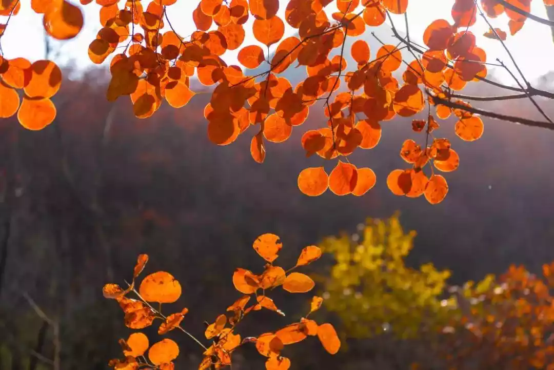 After autumn, the mountains in Shimenfang Scenic Area are covered with cotinus coggygria, and the occasional pines in the mountains make the red leaves all over the mountains particularly beautiful.