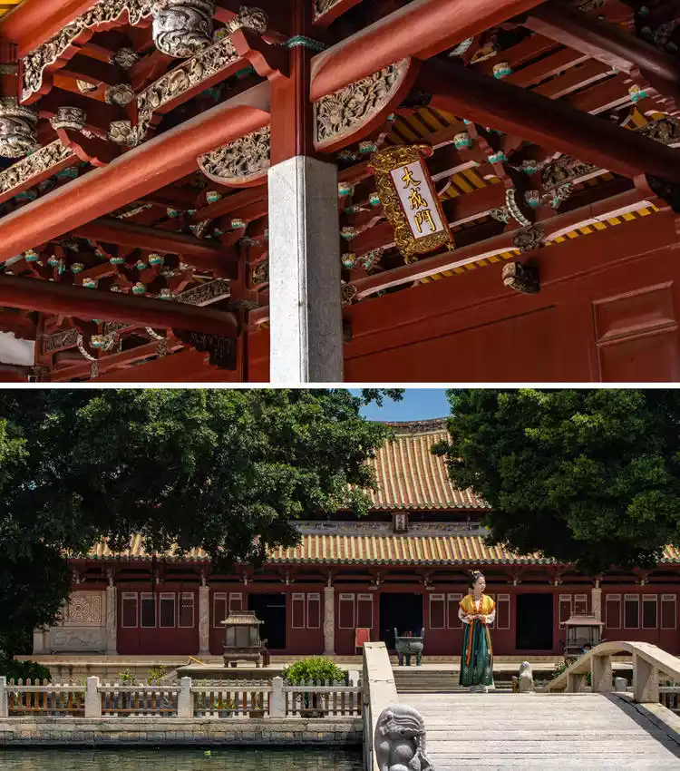 It was first built at the end of the Kaiyuan period of the Tang Dynasty. The entire building is magnificent in scale and rich in connotation. The temple displays more than 500 cultural relics such as the works and relics of famous people in Quanzhou throughout the dynasties, as well as ritual vessels and musical instruments for Confucius worship. It integrates the Central Plains culture and the ancient architectural art of southern Fujian. It gathers the essence of the Confucius Temple complex in the architectural styles of the Song, Yuan, Ming and Qing dynasties. It is one of the largest existing Song Dynasty buildings in Quanzhou.