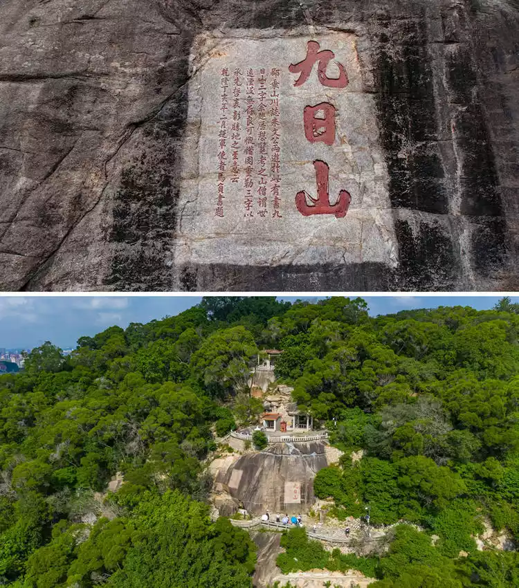 Jiuri Mountain, with its towering peaks reaching approximately 100 meters high, boasts majestic cliffs and verdant trees, creating a picturesque landscape. As the saying goes, "Every stone in the mountain is inscribed with a word." Since the Tang Dynasty, famous figures have ascended or lived in seclusion here, resulting in a collection of centuries-old cultural relics and numerous inscriptions by renowned figures throughout history, with 75 inscriptions still visible today.