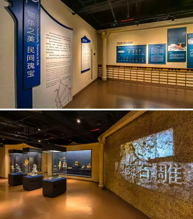 It mainly displays traditional art projects of Quanzhou's intangible cultural heritage. Quanzhou's traditional art is diverse, including stone carving, wood carving, paper weaving, puppet head carving, colored paper weaving, paper weaving, lanterns, etc.