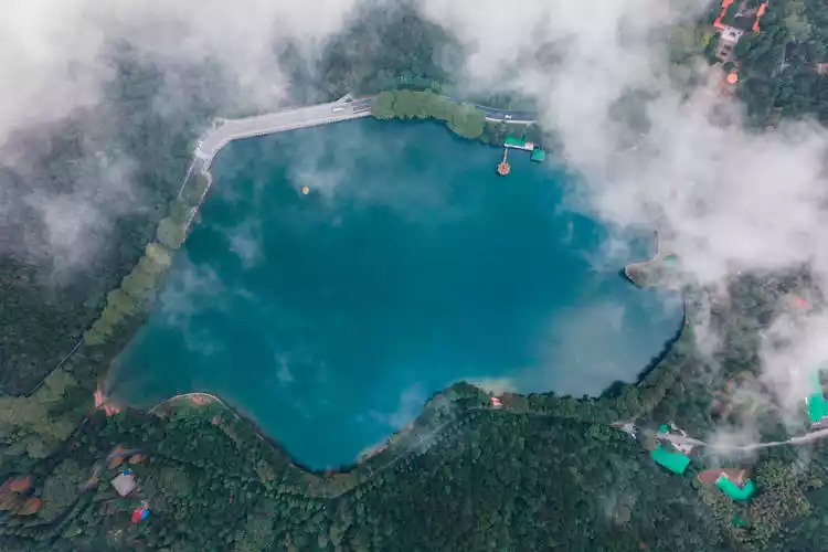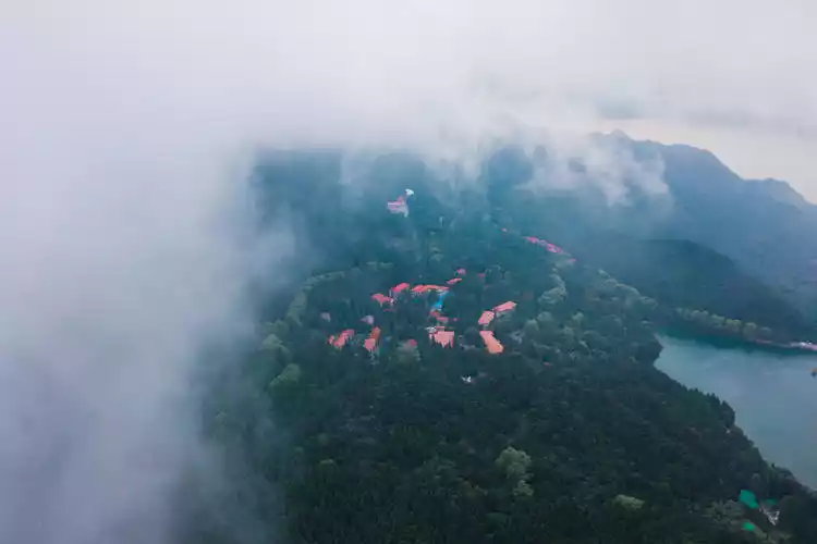 Lulin Lake is one of the two major alpine lakes in Lushan Mountain, located at an altitude of 1,000 meters. When the drone climbs to an altitude of 200 meters, it rises into the sea of clouds. From the perspective of God, Lulin Lake is full of clouds and magnificent.