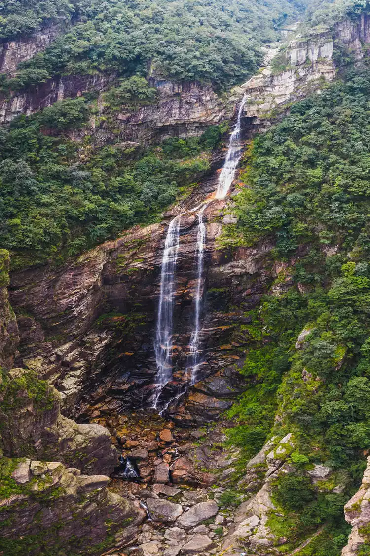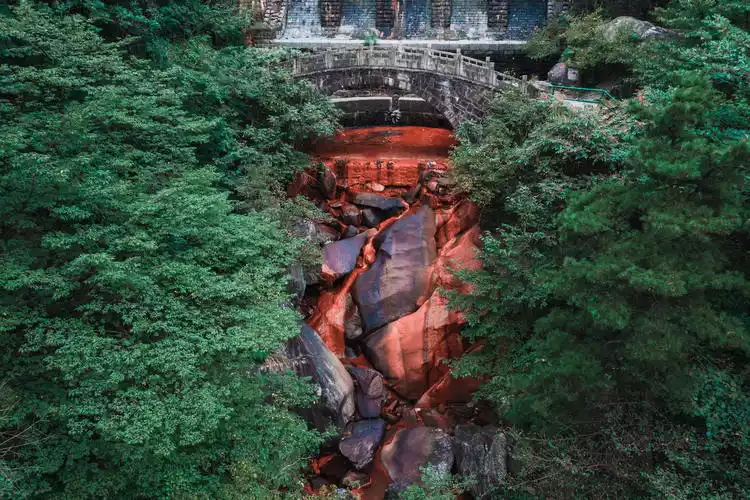 There's a sky bridge in Jinxiu Valley, but it's actually a bridge without a sky bridge, a truly remarkable wonder of Lushan. The bridge's wonder lies not in the bridge itself, but in the steep valley where it overlooks. Within the valley, steep cliffs and ravines, layer upon layer, are carved into a magnificent scene, resembling a pile of bricks.