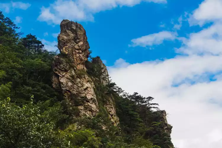 In the Jinxiu Valley, which is about 1.5 kilometers long, there are many large and small attractions such as the sky bridge, the good luck stone, the dangerous peak, the Fanyin Spring, the Lixian Gate, the Guanmiao Pavilion, the Jinsong, the Imperial Stele Pavilion, and the Immortal Cave. The scenery changes with every step.