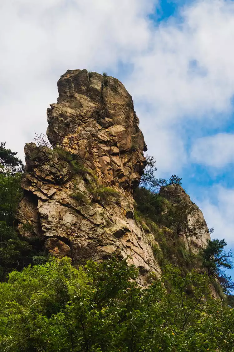 Walking along the stone steps built beside the cliffs of Jinxiu Valley, you will see thousands of rocks competing for beauty and winding ravines in the valley; the cliffs are naturally formed, the stone forests are tall and beautiful, and the steep cliffs and ravines are like the roar of a lion, the leap of a tiger into a stream, the climbing of agile monkeys, and the sitting of immortals, all of which are lifelike.