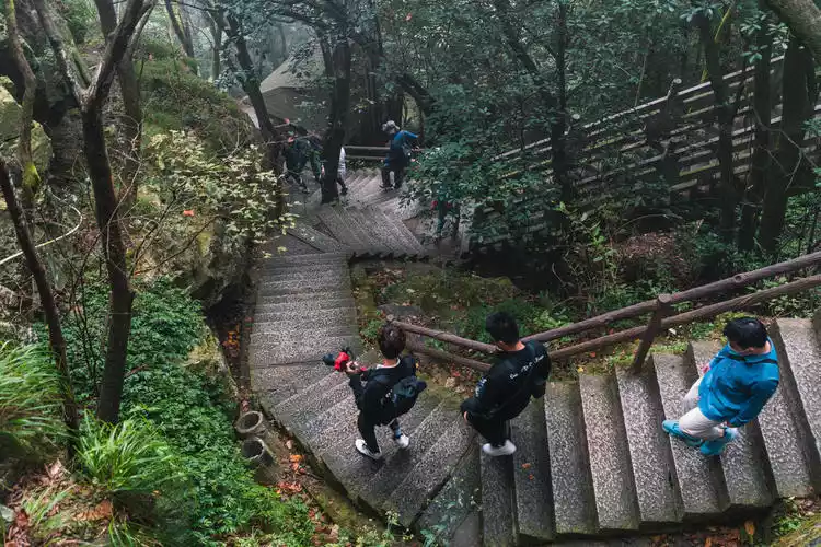 From Taibai Station to Sandiequan, you'll have to climb 3,000 winding stone steps, descending first and ascending later. Some sections are quite steep, and as you ascend and descend, you'll need to conserve your energy, taking each step firmly and zigzagging. Rest as you get tired. Along the way, there are supply stations and places to board sedan chairs. There's also a stall selling Lushan flower wreaths and katydid cages, all of which look quite interesting.