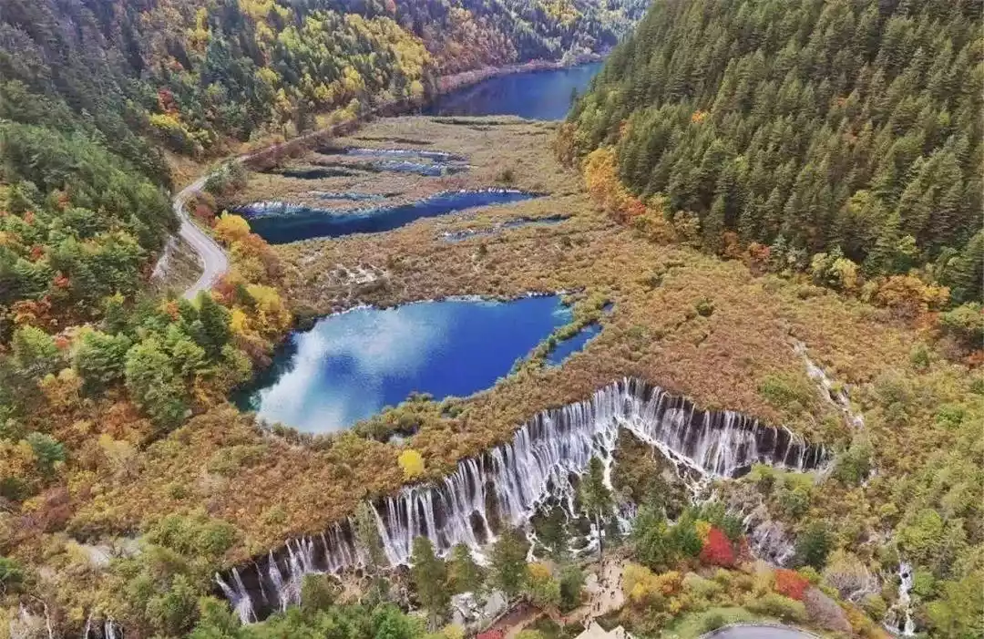 Snow-capped peaks, waterfalls, and colorful forests, every place is a scene, and every step makes people nostalgic. Mountains, forests, springs, waterfalls, and numerous lakes together compose Jiuzhaigou's unique "Golden Autumn Fairy Tale"
