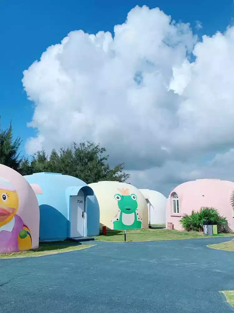 The entire volcanic island cabins are divided into single-family houses and townhouses. Each townhouse consists of 4 rooms connected together. If you go during the off-season, you can take the initiative to ask for a room with a sea view. The closer the cabin is to the sea, the more stairs there are. You can ask the security guard to help carry your luggage!