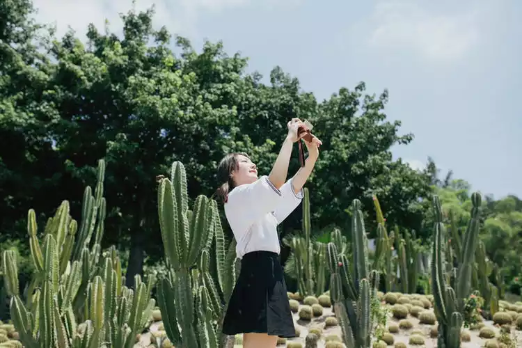 🌵🌴The cactus area is the place I have always wanted to take photos in, because I want to go for a college style, but I didn’t choose the right clothes, so I will look fat in the photos. I suggest that you wear a slim skirt, which will be more suitable.