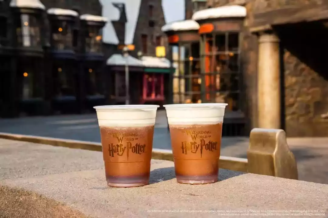 Butterbeer is available at the Three Broomsticks restaurant in the Harry Potter land, as well as from a food cart outside. They also sell incredibly juicy chicken drumsticks, making them a great value for money in the land.