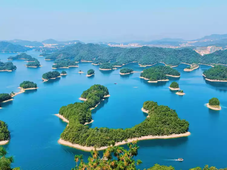 Qiandao Lake, located in Chun'an County, Hangzhou, about 130 kilometers from the city, is ideal for a road trip. I did some research before my visit and discovered that Qiandao Lake truly has over 1,000 islands of varying sizes, with key attractions including Meifeng Island, Monkey Island, Longshan Island, Lock Island, Santan Island, Huangshanjian Island, and Tianchi Island.