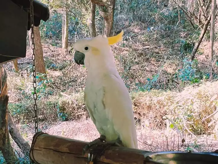 This place is truly a bird paradise. I was particularly impressed by this white parrot, scientifically known as the Sulphur-crested Cockatoo. It has a terrible temper. If you feed it or tease it, it will spread its crest and flutter its wings, giving off a "keep out" expression. But despite its temper, it's actually quite adorable.