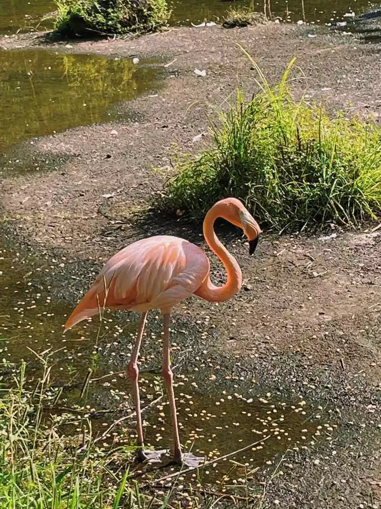 My favorite flamingo, but its area is too far inside, so we can only watch from a distance outside the fence. Super elegant, they won't eat when fed, I've personally tested it.