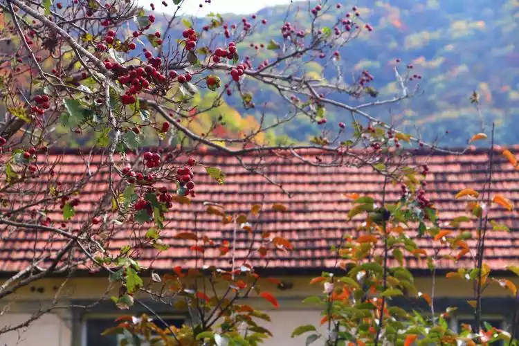 The hawthorn tree in front of the village also heralds the arrival of autumn. The treetops are full of red hawthorns. Standing under the tree is like a song of love for the hawthorn tree.
