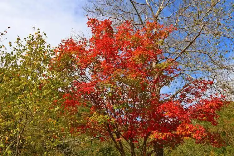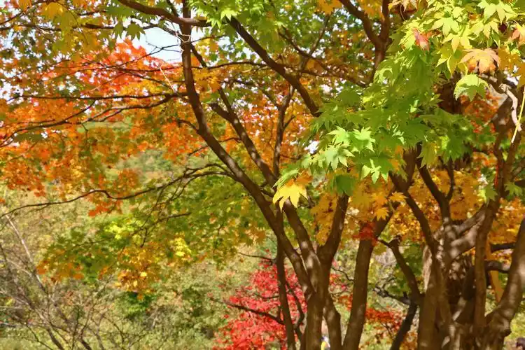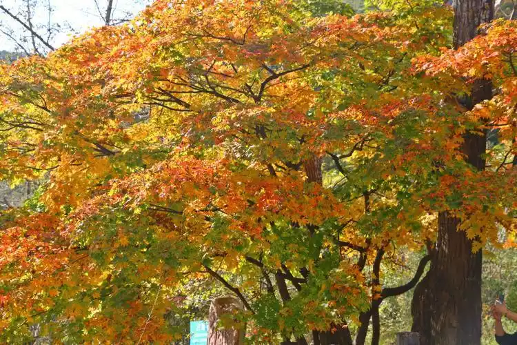 Walking under the tree, the maple tree is even more shocking. The crown of the tree extends in all directions, and each tree presents maple leaves of different colors. Its temperament has a unique beauty from other maple trees, as if it is wearing a new autumn dress.