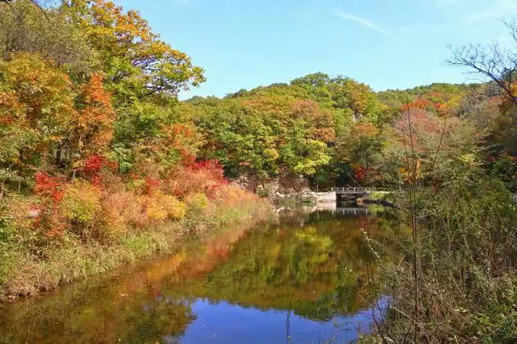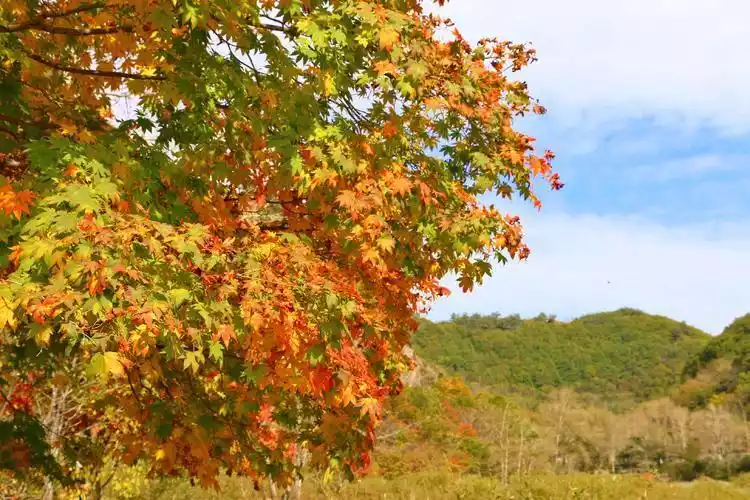 Walking in it is full of the beauty of autumn. The mountains, rivers, grasses, trees and colorful maple leaves make you feel as if you are in a paradise, far away from the troubles of the world.