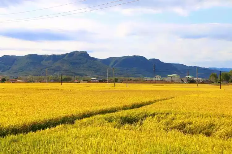 The Benhuan Highway passes through Jianchang Town, a town planted entirely with rice. The highway here seems to extend from the paddy fields. In autumn, the rice paddies transform into a vibrant golden hue. A gentle breeze rustles the rice paddies, creating a vibrant musical score against the backdrop of distant green hills and the toiling figures of farmers. As the rice matures, farmers are still harvesting. Standing on the ridges and gazing out over the vibrant rice paddies, the vibrant colors resemble a palette, blanketing the earth in a golden carpet. The fields are awash in golden color – the color of harvest, a scene of happiness.