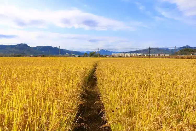 The endless expanse of rice paddies is divided into grids. Walking along the ridges, you can touch the waves of rice with your hands, and together with autumn, you can create a picturesque rural landscape. The golden rice fields and the graceful ridges complement the green hills and houses, forming a magnificent rural autumn landscape.