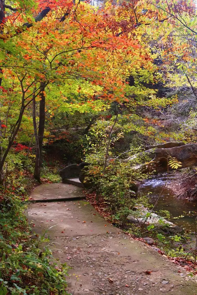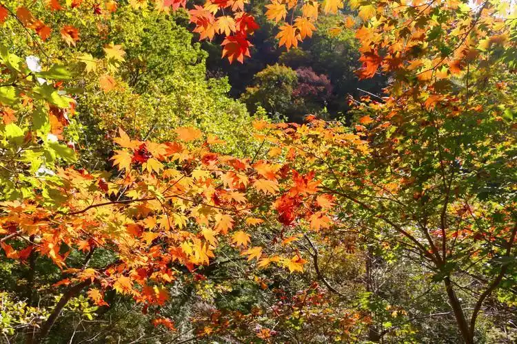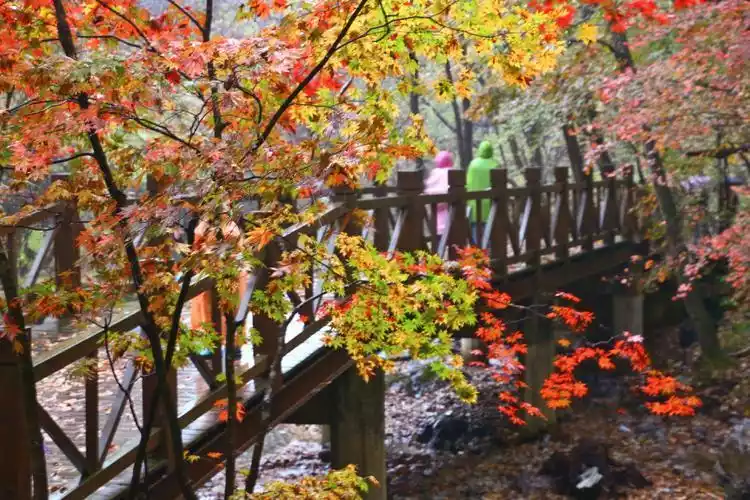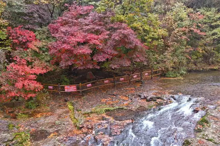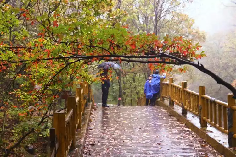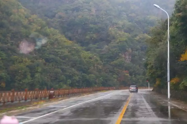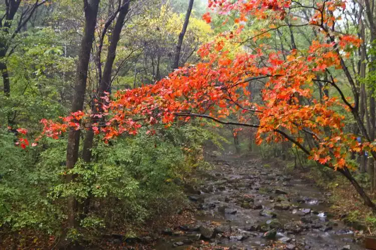 4. The peak season for maple leaves in Guanmen Mountain is probably mid-October. The maple leaves on October 1st are not yet at their reddest. Although the streams in Guanmen Mountain will become more abundant on rainy days, and the scenery will be more colorful and transparent, it is not recommended to go up the mountain. After personal experience, raincoats and umbrellas are not effective in protecting against rain.