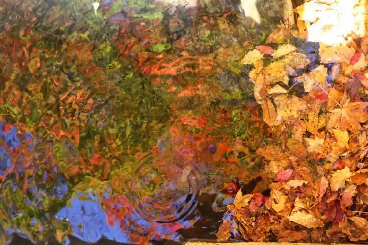 Looking closer, you will see that each maple leaf is delicate and exquisite, with a slight green tint at the bottom of the fiery red leaves and veins radiating outwards to the center of the leaf. The red maple leaves are matched with the light flowing water, and the beauty of the combination of movement and stillness gives autumn more life.