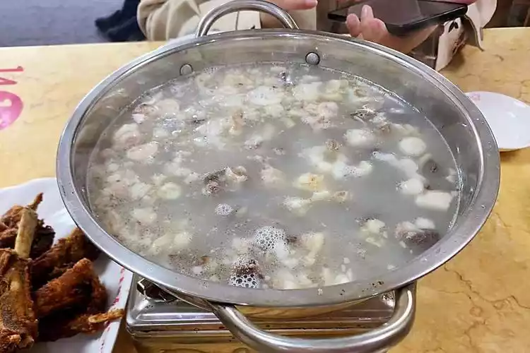 When you come to Benxi, you must eat Xiaoshi Lamb Soup. Some people who have not tasted it may not like it. Xiaoshi is a place name, so there are many Xiaoshi Lamb Soup restaurants. The most popular one should be Xiaoxiao Lamb Soup, which tastes really good. We had two meals of Xiaoxiao Lamb Soup when we arrived in Benxi and when we left Benxi. The two of us ordered their fried lamb chops, lamb offal soup, and ox tongue biscuits, all three of which were very good.
