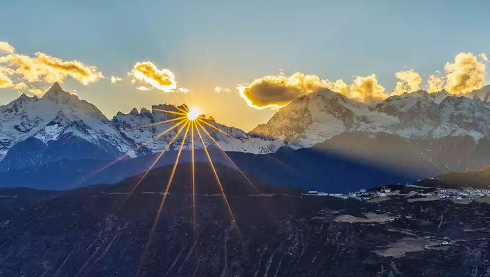 This is a hiker's paradise, hailed by hikers as "the last paradise on earth." Every year, tens of thousands of believers travel thousands of miles to make the pilgrimage, hoping to witness the beauty of the golden mountain in the sun and experience the holiness and tranquility of the snow-capped mountains.