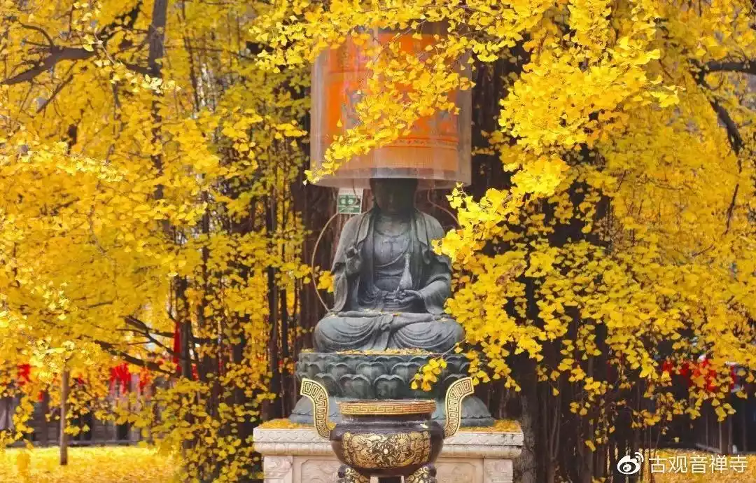 At this time of year every year, it becomes extremely difficult to see the ginkgo trees in the ancient Guanyin Temple, and tourists come from all directions to catch a glimpse of their thousand-year-old beauty.