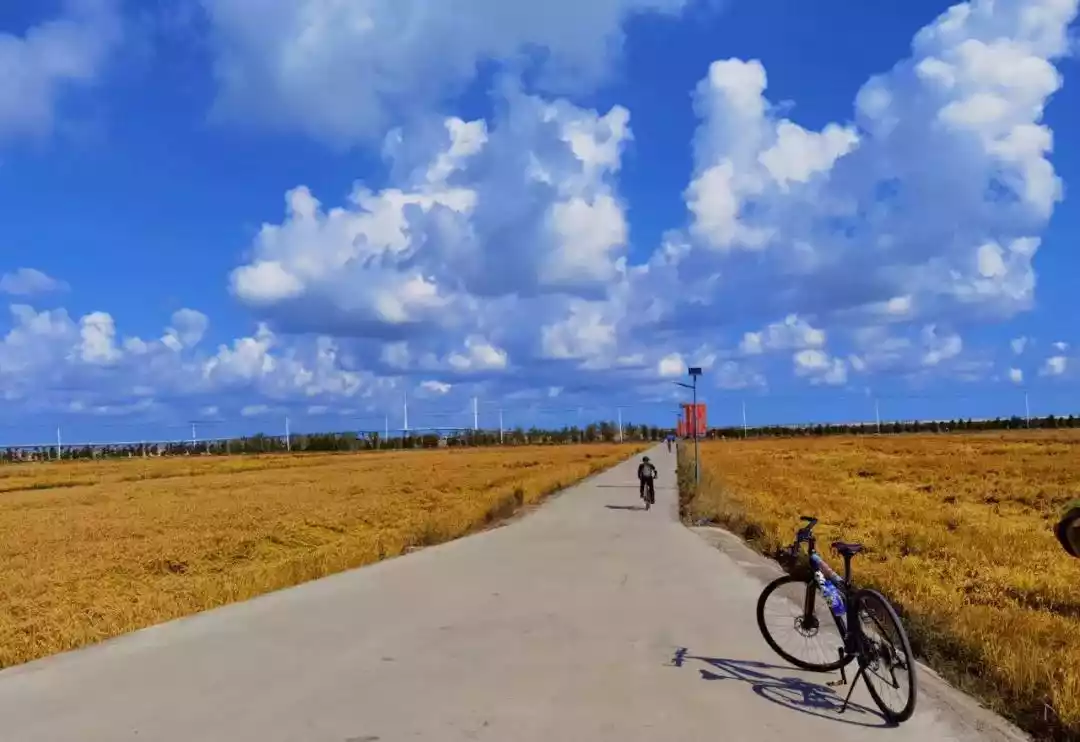 Changxing Island in autumn is spread out from the rice fields. The countryside is spread out with intoxicatingly beautiful colors. Riding at the endless estuary, accompanied by windmills and embankments, is a great place to take photos!
